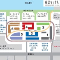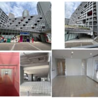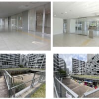 現地調査。キャナルコート全体は1つの街のようにまとまった空間に感じた。当該のエントランスは、ガラス張りで光が入り開かれているように見えているにも関わらず、暗く独立しているように感じた。周辺には街路樹が所々あるが、ビル風が比較的強い。
