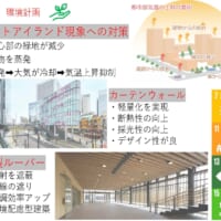 環境に配慮し、植栽を周囲に配置することで気温の上昇を抑制する。外壁に縦型ルーバー付きのカーテンウォールを配置し、断熱性の向上、自然光の取り入れ明るい空間と同時に日射調整を行い空調負荷の低減を狙った。