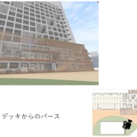 今回カーテンウォールを設けたので風圧力の検証を行った。今年の平均気温と平均風速を入れた結果。図の上段がルーバー付きのカーテンウォールの解析になっており、下段がカーテンウォールを一般的な壁とした場合である。ルーバー付きカーテンウォールにする事で、カーテンウォールに対する風圧力やその周辺の風速が抑えられた。更にカーテンウォール内部の解析。西側のカーテンウォールの上部を開放することで、暖かい空気を外導き夏場の室内環境を向上させる。こちらがカーテンウォール上部の空気が外に抜けているシミュレーションの解析です。