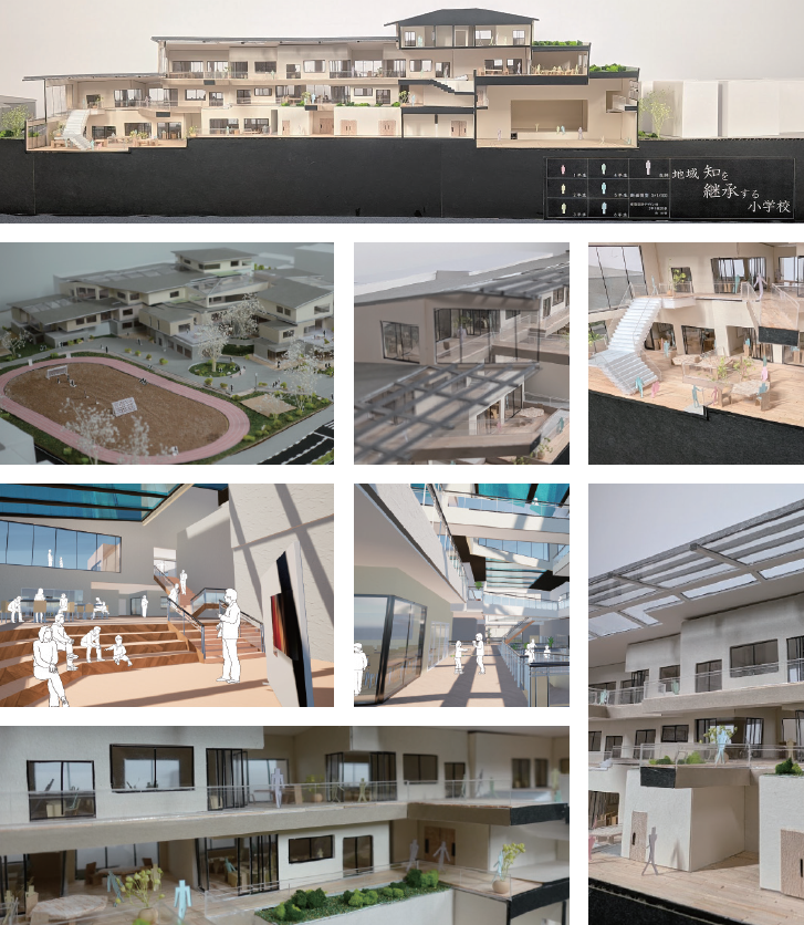 今回の計画では、地域知の継承と現代の小学校の教師の問題をテーマとした建築提案である。敷地は千葉県の市川市にし、現在市川小学校がある。この小学校の問題点として建て替え優先度が高いという問題点もある。特徴として南側に千葉街道とJR市川駅の二つのアクセスがある。そのため地域の生活の中心の場所に位置し、児童だけでなく近くに住む地域住民も日常的に関わることができる。少子化や地域のつながりの希薄化が進む中で、小学校を単なる教育施設としてではなく、地域の歴史や記憶、暮らしの知恵を受け止め、次世代へとつないでいく拠点として小学校を再定義する。建築の中心には、地域の人々が持つ経験や歴史、生活文化を記録・保存・活用するための空間として「地域Lab」を設けることにした。この地域Labでは、地域住民と児童が関わりながら知を共有し、一部の授業や日常生活へと展開する。さらに、そこで蓄積された内容は上級生から下級生へと受け継がれ、学年を越えた学びの循環を生み出す。このように今回の計画で行われる循環の内容は、地域知を保存する「記憶の場」であると同時に、地域の歴史を更新し続ける「学びの場」として機能し、地域の歴史を未来のこどもたちへと受け継いでく新しい小学校の仕組みとなる。
